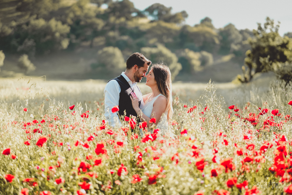 A pocos días de su boda nos fuimos con Paula & Javi a disfrutar de la primavera, de su luz cálida y del intenso rojo de las amapolas. Nos acompañó también su dulce compañera canina que hizo aún más divertida la sesión. Deseando compartir con ellos su gran día que llegará muy pronto.